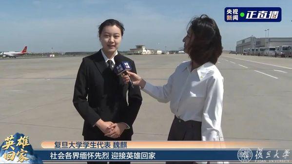 魏麒作为学生代表,赴沈阳见证在韩中国人民志愿军烈士遗骸归国,在现场接受采访