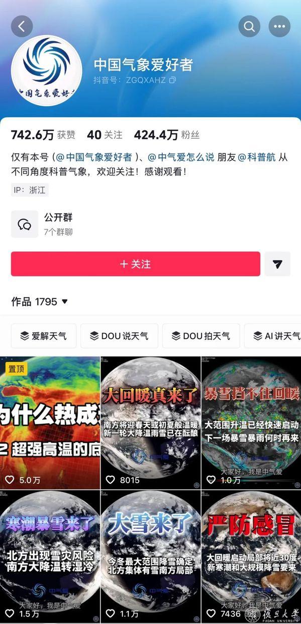 作为知名科普自媒体“中国气象爱好者”(以下简称“中气爱”)学术顾问,周文带领学生与新华社、人民日报、中央广播电视总台合作,用生动有趣的视频讲解冻雨、暴雨、台风……视频累计播放量超过500万次,让气象知识走进大众生活,为筑牢防灾减灾第一道防线起到积极作用。