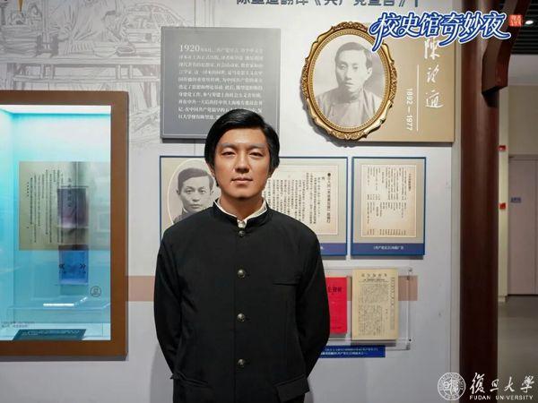 扮演陈望道先生的是2024级集成电路与微纳电子创新学院本科生李秉键。他为角色做了不少准备,查阅了许多有关陈望道的文字和影像资料,书架上还摆放着仿照早期《共产党宣言》封面的书籍。对他而言,扮演老校长的经历是一次精神洗礼:“老校长们为复旦献身的精神深深打动了我,也敦促着我不断前进。”