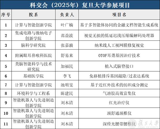 12月15日至17日,2025年高校科技成果交易会(以下简称“科交会”)在广州举行。复旦大学科研院组织了11项优秀科研产业化成果集中亮相,涵盖人工智能、信息技术、生物医药、智能制造等多个前沿领域以及“十五五”布局的未来产业核心领域;相关成果共包括1项重点展示项目、6项海报展示项目和数项视频展示项目等。