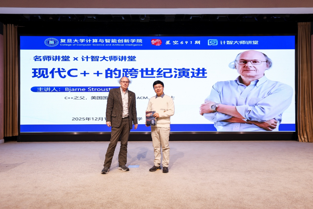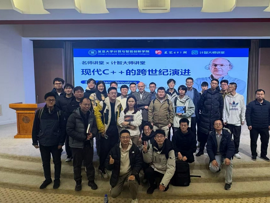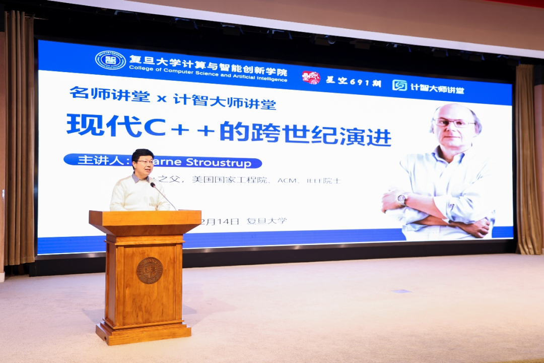 2025年12月14日上午,复旦大学计算与智能创新学院、复旦大学团委联合主办的“名师讲堂”暨“计智大师讲堂”活动在邯郸校区光华楼东辅楼吴天凡报告厅成功举办。本次活动邀请了C++之父Bjarne Stroustrup教授为广大师生及校友作题为“现代C++的跨世纪演进”的报告。活动由复旦大学学生会、计算与智能学院分团委学生会、CSDN、奇点智能研究院协办。报告会由学院副院长彭鑫主持,来自学校各院系的师生以及校友300余人参加了活动。