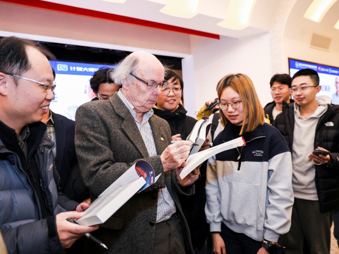 在互动交流环节中,现场的本科和研究生同学以及校友代表踊跃提问,与Bjarne Stroustrup教授就C++语言的关键技术决策、发展方向、生态建设等方面进行了热烈的讨论。活动结束后,现场的同学和校友们仍然意犹未尽,纷纷手持Bjarne Stroustrup的著作寻求签名及合影。