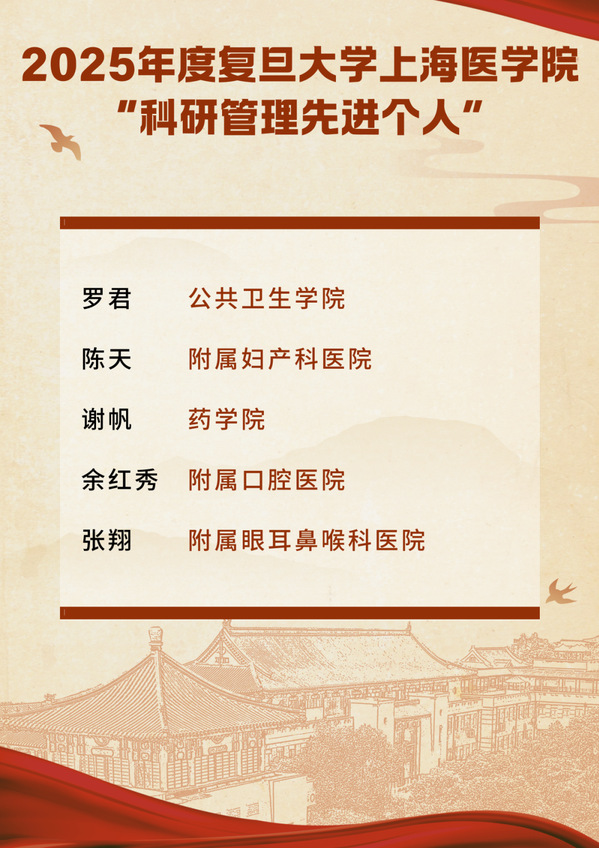会上,2025年度“科研管理先进个人”“科研管理先进团队”及“成果转化优秀管理者”名单揭晓,公共卫生学院教师罗君、中山医院肝肿瘤外科主任医师施国明、华山医院科研处副处长刘威作为获奖代表发言。