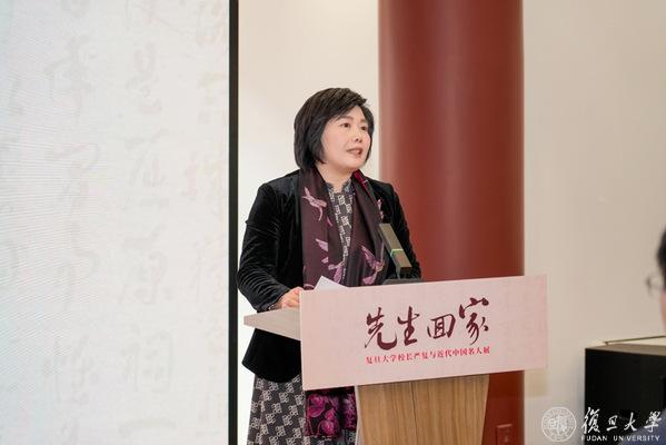 开幕式简约而深情。严复族亲、学者、两地文化代表齐聚。来自福州市鼓楼区、三坊七巷历史文化研究会等单位的相关领导,杨浦区委办、五角场街道领导,以及复旦大学相关部处、院系负责人、书画作者代表、复旦书画协会学生代表共同见证,话语间不提“流程”,只谈“心意”。复旦档案馆馆长黄岸青主持仪式。