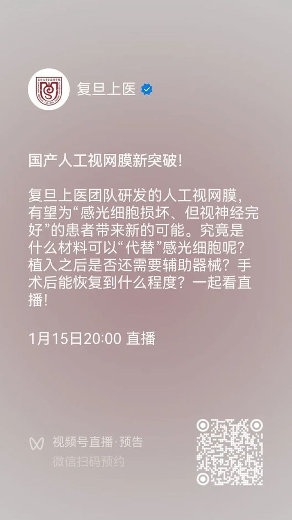 今晚8点,锁定公众号,跟我们一起对话科研团队,揭秘人工视网膜