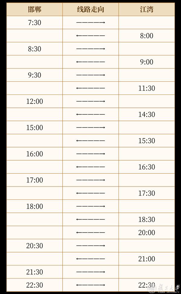 三、邯郸—江湾(工作日)
