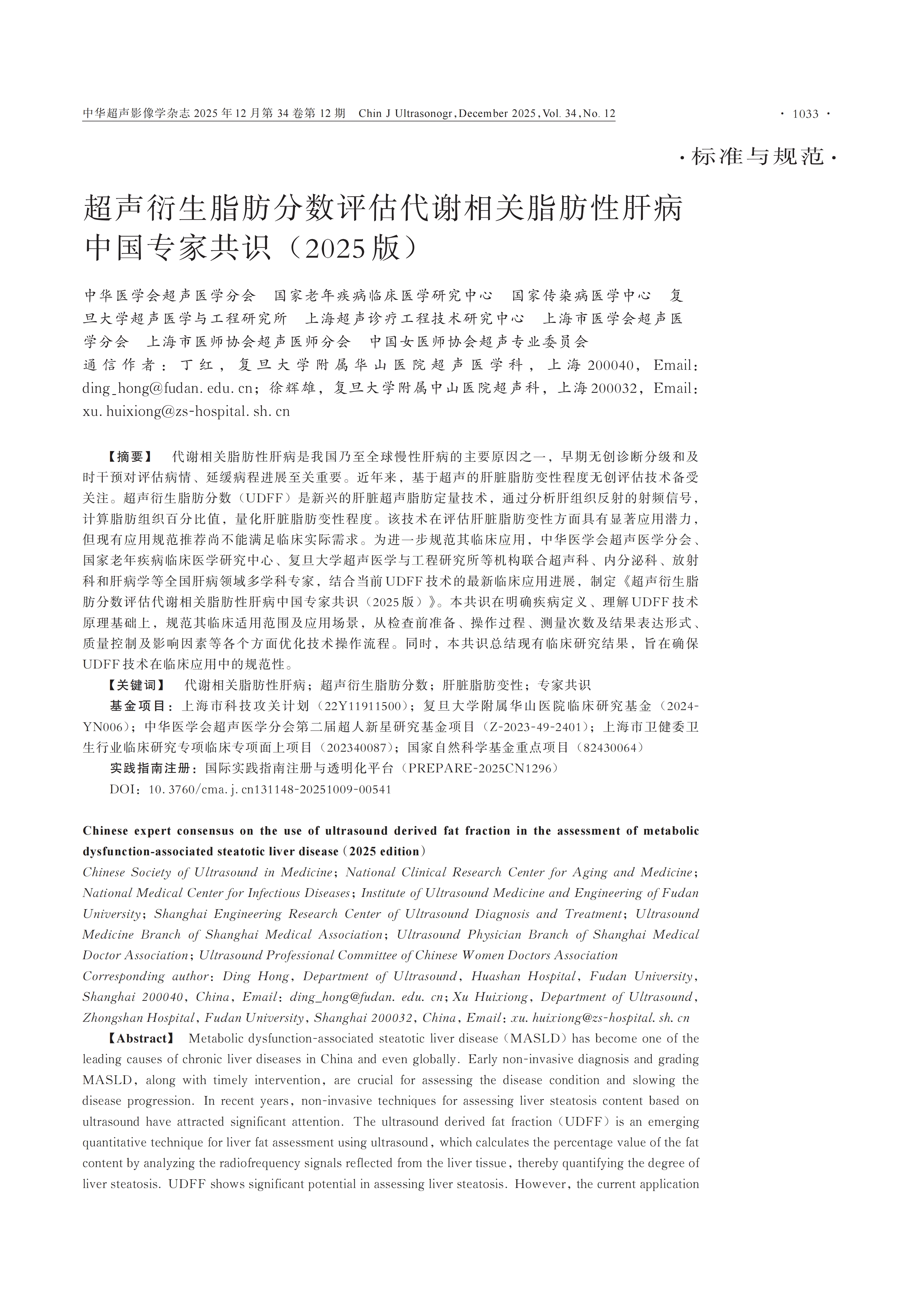 此外,本《共识》于2025年12月发表于《中华超声影像学杂志》和《临床超声医学杂志》,复旦大学附属华山医院丁红教授和复旦大学附属中山医院徐辉雄教授为共同通讯作者,华山医院薛立云和中山医院朱宇莉主治医师为执笔人。