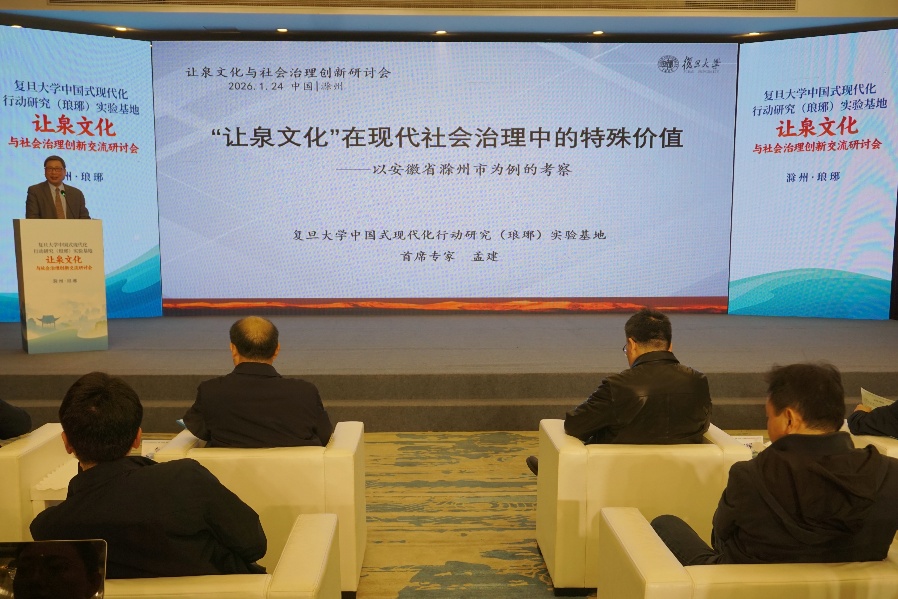 为深入贯彻落实党的二十届四中全会精神,深入推进中国式现代化实践重大现实问题研究,1月24日,复旦大学中国式现代化行动研究(琅琊区)实验基地在安徽省滁州市成功举办“让泉文化与社会治理创新交流研讨会”。
