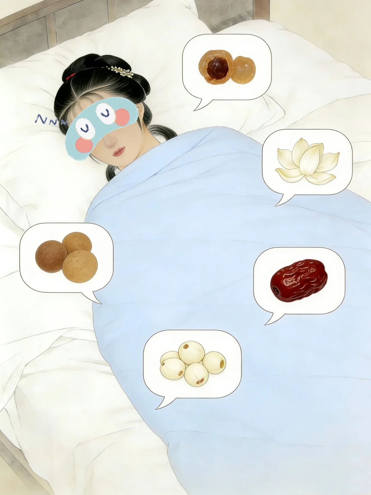·适量添加龙眼肉、酸枣仁、百合、莲子、桂圆、红枣等养心安神食材