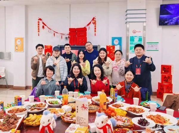 邯郸校区旦苑餐厅,张灯结彩、喜气洋洋。师生们围坐桌前,畅谈甚欢。