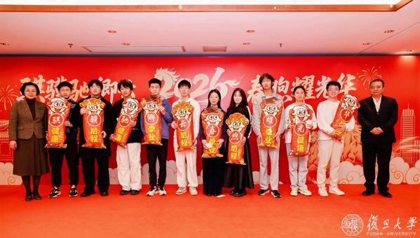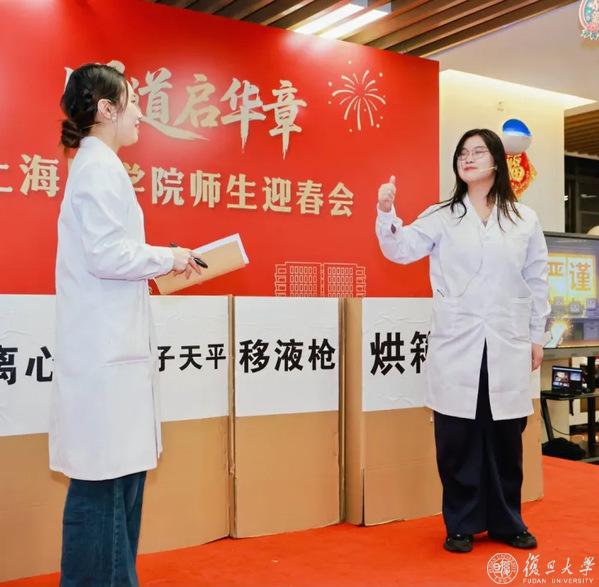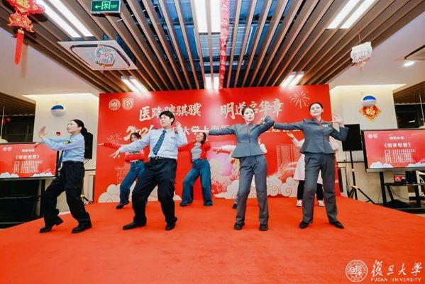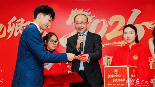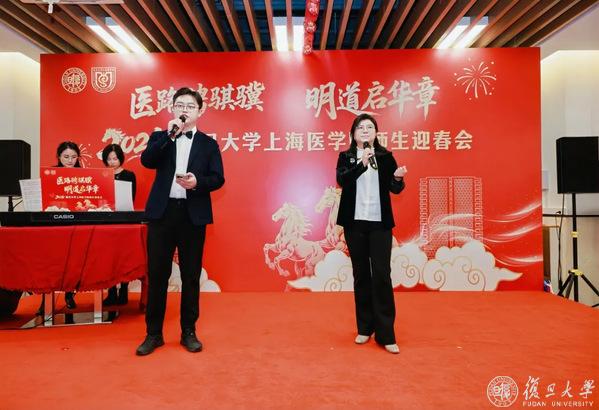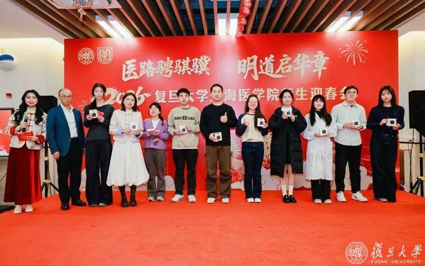 枫林校区的迎春会同样精彩。金力向学生代表送上新春慰问礼包,愿同学们新的一年健康快乐、学业进步。复旦上医党委副书记杨伟国,党委副书记、副院长徐军,党委副书记、纪委书记胡华忠出席。