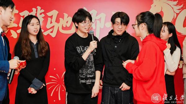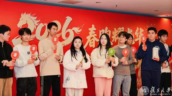 趣味游戏《复旦迎春·快问快答》巧妙融合复旦的历史与现在;《耳目一新·抢猜歌名》前奏刚响,台上抢答,台下跟唱。两场游戏将全场气氛一次次推向高潮。