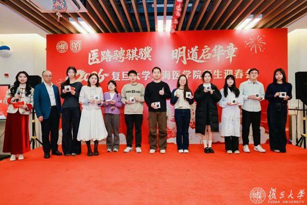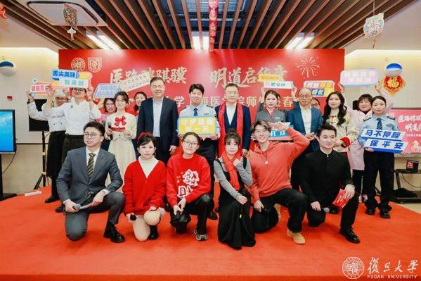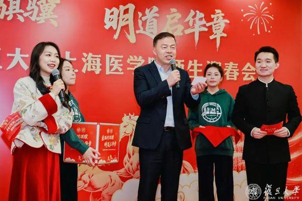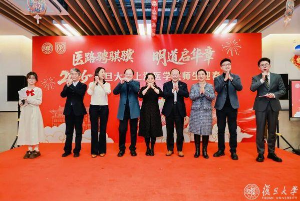 复旦大学校长、上海医学院院长金力,上海医学院党委副书记杨伟国,上海医学院党委副书记、副院长徐军,上海医学院党委副书记、纪委书记胡华忠,以及学校相关职能部门、各附属医院、各院所平台的教师代表和留校学生代表欢聚一堂,共迎丙午马年。