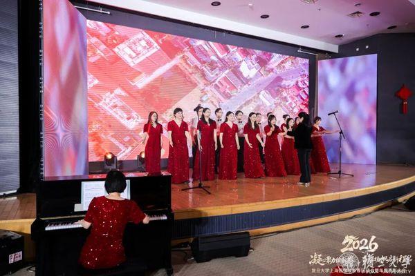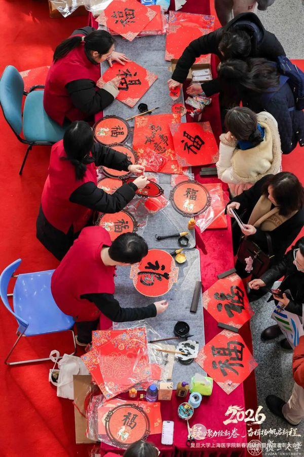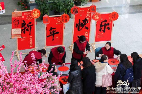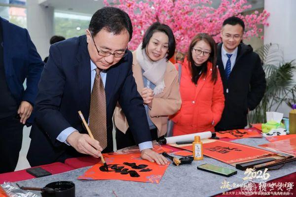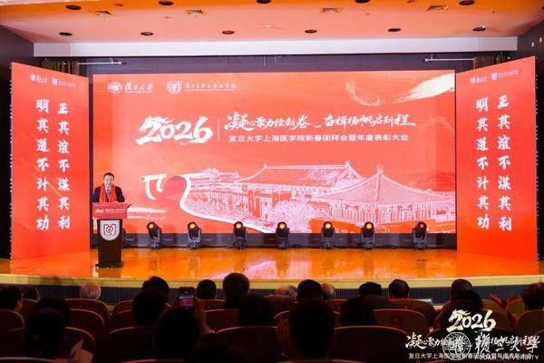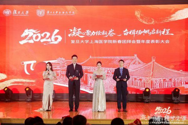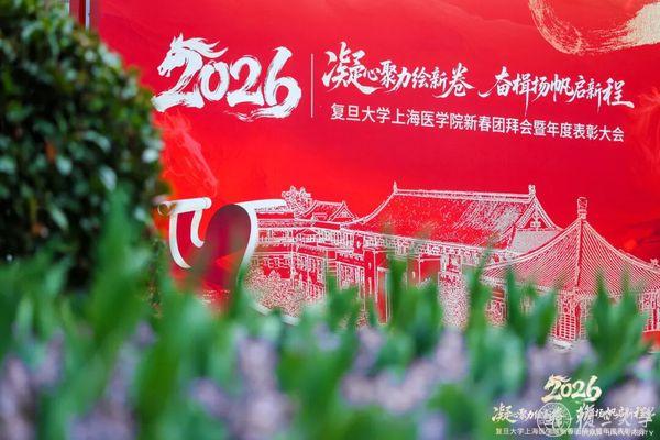 红梅报春,福满枫林。近日,校园内处处温暖祥和,主干道两侧换上了崭新的红色道旗,明道楼会场外灯笼高挂、福字点缀。2026年1月31日下午,复旦大学上海医学院在枫林校区明道楼隆重举行2026年新春团拜会暨年度表彰大会。