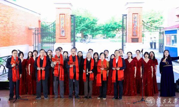 医学院机关合唱团登台演绎《奉献》与《阳光路上》两首歌曲,唱响上医人的责任担当与医路荣光。