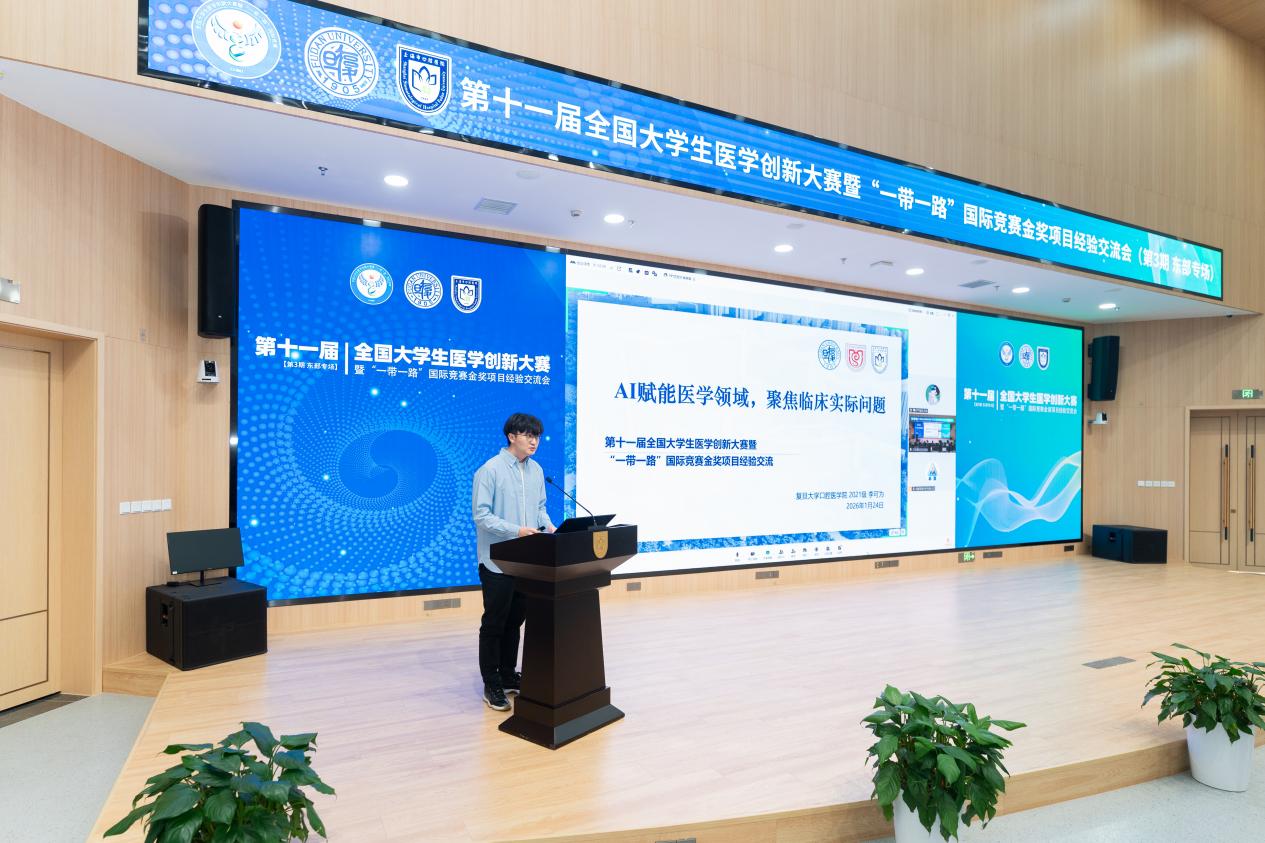 近日,第十一届全国大学生医学创新大赛金奖项目经验交流会(复旦专场)举行。本次活动采取线上线下联动方式,吸引了来自复旦大学、上海交通大学、同济大学、海军军医大学、南京医科大学、浙江大学、扬州大学等多所高校的金奖师生齐聚一堂,共话医学创新与人才培养。