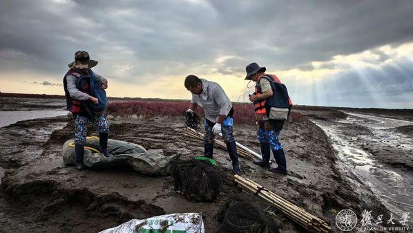 夕阳下,上海崇明东滩的潮水缓缓退去,滩面上泛起粼粼金光。这里是长江入海口,是复旦大学湿地生物多样性保护修复团队的“实验室”和“第二课堂”。几乎每个星期,都会有复旦师生来到这里开展野外调查和实验。