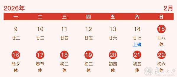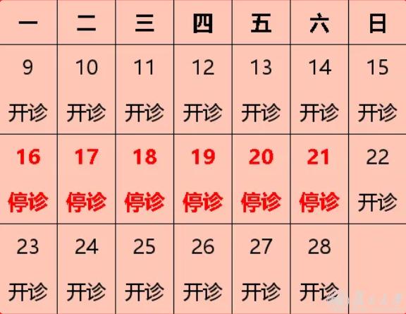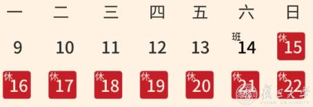 2月15日(周日)至2月22日(周日)共8天,放假,无门诊,2月14日(周六)上班,安排周一门诊。