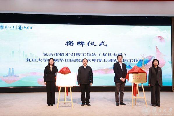现场,“包头市招才引智工作站(复旦大学)”正式授牌,“复旦大学附属华山医院蒿汉坤博士团队名医工作站”揭牌,为双方在人才引育、医疗技术等领域深化合作搭建了重要平台。
