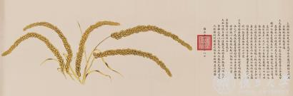 在古代中国,优质黍粟等嘉禾祥瑞常被视为政治清明、海宇升平的象征。1725年,河南、陕西等地和北京先农坛皇家“一亩三分地”的庄稼均大获丰收。雍正皇帝颇为欣喜,命意大利人郎世宁照实物作画,以庆贺这个吉祥之年。在《瑞谷图》中,五株硕果累累的谷穗沉甸甸地铺展开来,金色耀眼的饱满谷粒跃然纸上。朝廷借此宣扬勤政爱民、劝课农桑的治国理念和政通人和、百姓富足的发展成效,进而鼓励大家再接再厉。