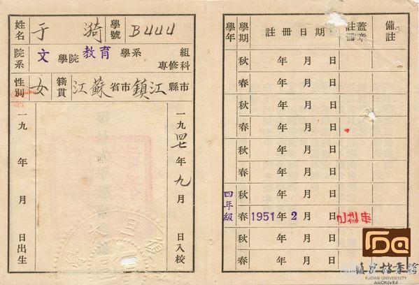 选择教育学系,有现实的考量,免学费、免生活费,对早年丧父、母亲带着五个孩子艰难度日的于家来说,这是最经济的选择。