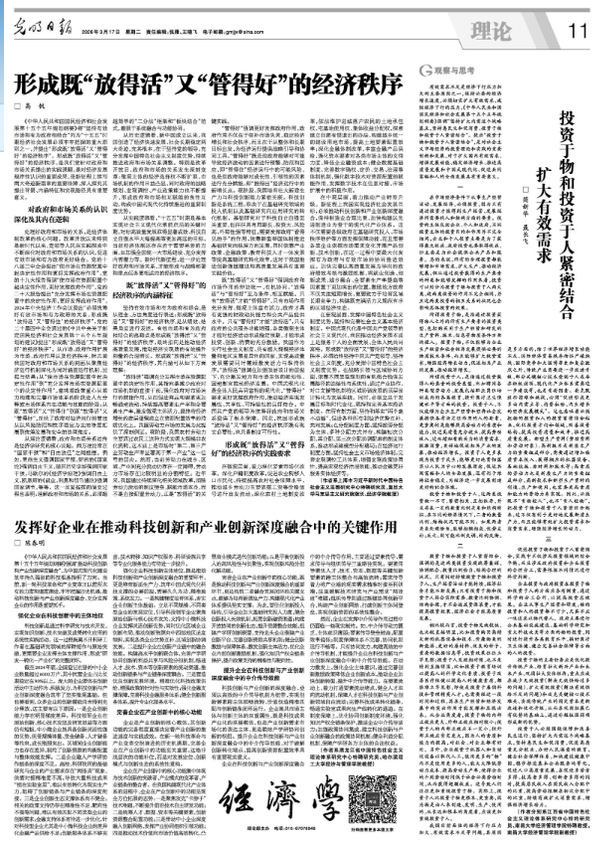 “管得好”强调更好发挥政府作用,政府作用不仅在于弥补市场失灵,稳定经济增长和社会秩序,而且在于从整体和长期目标出发,为经济运行提供战略引导和协同工具。“管得好”既是指政府能够对可能导致经济波动的因素进行预警、防范和回应,即“管得住”经济运行中的可能风险,也是指政府能够对成长性、引领性的因素进行充分赋能,即“推得出”经济运行中的新增长点。现阶段,我国培育壮大新质生产力与科技创新能力紧密关联。科技创新是系统工程,取决于在基础研究领域的投入机制以及基础研究向应用研究的转化机制。基础研究对于科技自立自强至关重要,但往往具有周期长、投资大、风险高、外部性强等特征,需要发挥政府“看得见的手”的作用,依靠新型举国体制推进基础研究向纵深方向发展,同时依靠产业政策、金融政策、教育科技人才一体发展等提高基础研究转化效率,这对于我国推进创新强国建设和高质量发展具有重要实践价值。