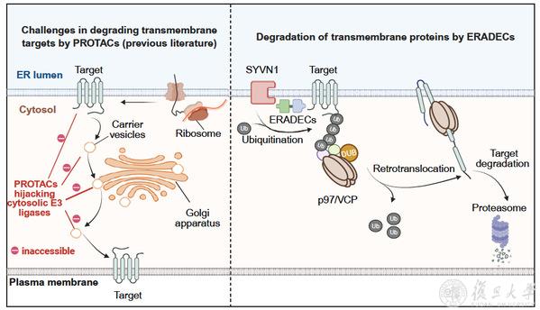 北京时间2026年3月19日晚,复旦大学鲁伯埙与粤港澳大湾区精准医学研究院宋海坤团队联合海军军医大学盛春泉团队,在《细胞》(Cell)杂志在线发表题为“Hijacking ER-associated degradation (ERAD) for targeted degradation of transmembrane proteins”的研究论文。