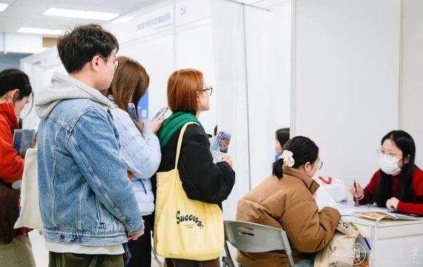现场除了本校学生,也有大批其他高校的学生参与。3月20日一早,来自沪上其他高校的学生便“组团”自松江校区出发前来,从18号线复旦源出口直接扫码登记后入校。“这场招聘会来的企业比较多,我也来尝试下。”来自杨浦区其他高校的张同学说。