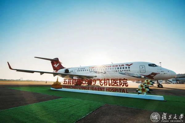 2026年2月,由复旦大学附属耳眼鼻喉科医院与中国商飞公司携手打造的五官健康C909飞机医院首次飞出国门抵达老挝首都万象