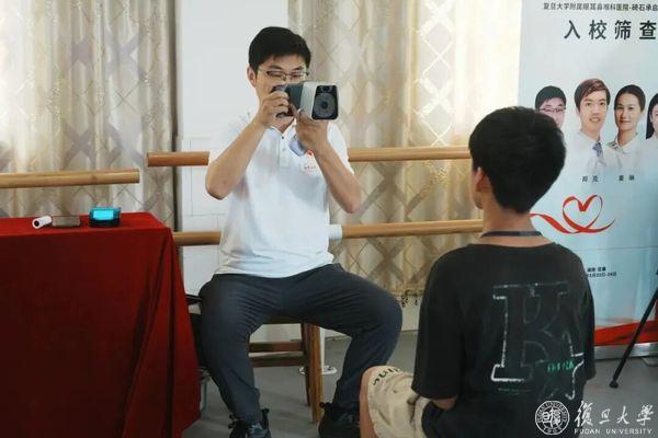 刘鎏为湖南省宜章县迎春镇碕石村承启红军小学学生开展眼健康筛查