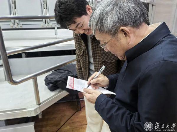 散场后,葛剑雄被带着纸笔“求签名”的同学们围住。在同学们眼中,这位八十多岁的老教授有着别样的“圈粉”能力:他是热门游戏的学术顾问,他的故事出现在高中语文试卷里,他不用PPT却能脱口而出两个小时的精彩讲述……他的身上既有厚重的学术底色,又有与年轻人对话的真诚与开放。