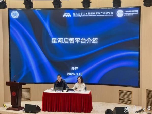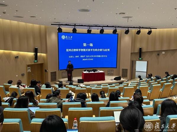 为高质量实施新时代立德树人工程,以人工智能赋能高校思想政治教育,全面提升辅导员专业素养与履职能力,建强大学生思想政治教育骨干队伍,3月19日上午,复旦大学于邯郸校区逸夫楼一楼报告厅举办辅导员队伍专题培训。本次培训以“星河启智科学智能开放平台的介绍与应用”为核心主题,特邀上海科学智能研究院、复旦大学人工智能创新与产业研究院、CFFF智能计算平台的孙祥、谭添尹老师担任主讲嘉宾,复旦大学党委学生工作部副部长王茂异主持培训,全校各院系专职辅导员参训。