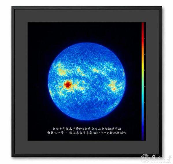 在今天的成果发布会现场,复旦大学向上海天文馆(上海科技馆分馆)赠送了一张特别的高精度全日面扫描图,该图基于“复旦一号”卫星搭载的“核科一号”对日探测光谱仪获取的数据生成,是国内首张镁离子K谱线的高精度全日面光谱扫描图。