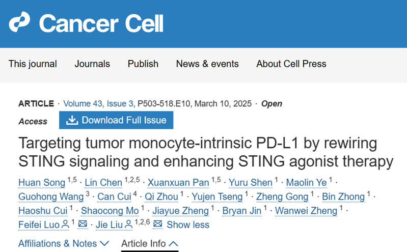 2025年3月10日,复旦大学附属华山医院刘杰教授、骆菲菲研究员团队在Cancer Cell(《肿瘤细胞》,中科院一区...