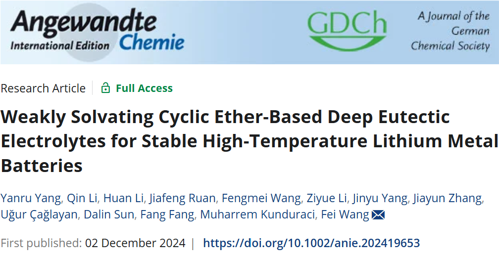 材料科学系王飞教授团队在宽温高稳定锂金属电池共晶电解液领域取...