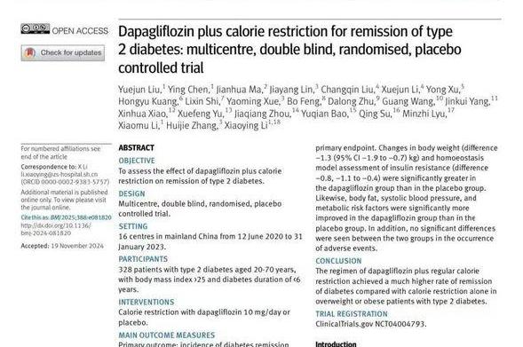 临床研究成果登上BMJ!中山医院内分泌团队在2型糖尿病缓解研究中...