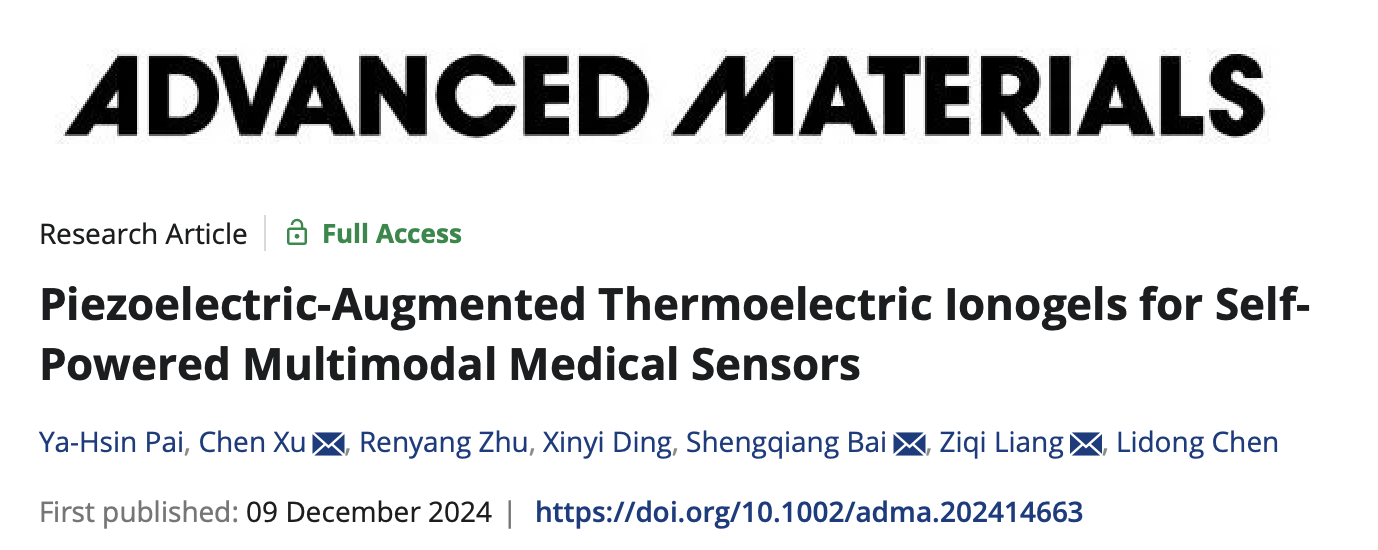 材料科学系梁子骐团队开发“压电增强热电”离子凝胶及多模态自供...