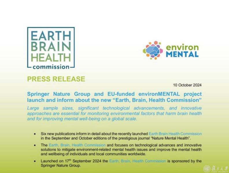 2024年10月10日,《自然-精神卫生》推出特刊,发布六篇评论文章,详细介绍了“环境、大脑与健康委员会”。