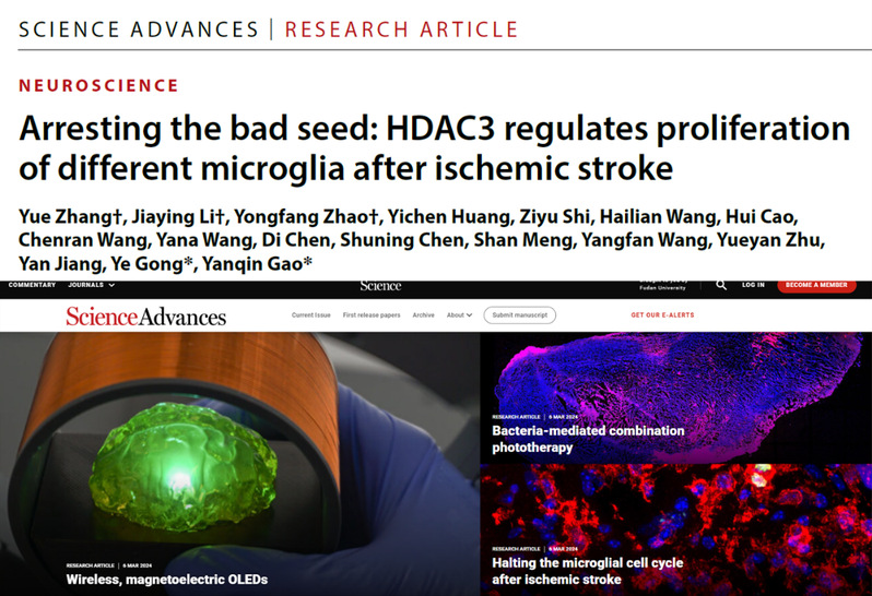 脑科学研究院高艳琴课题组揭示HDAC3调节缺血性脑卒中后不同小胶...