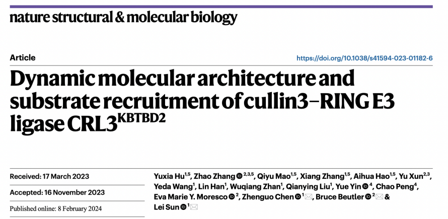 生物医学研究院孙蕾/陈振国团队揭示CRL3 E3泛素复合物底物招募及...