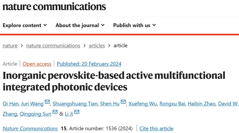 微电子学院季力教授团队研发基于全无机钙钛矿的多功能集成光子器...
