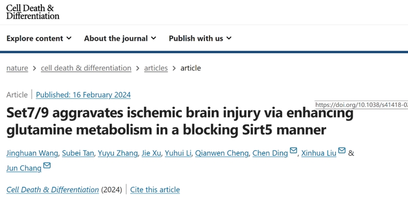人类表型组研究院昌军/刘新华/丁琛团队揭示Set7/9加重缺血性脑损...