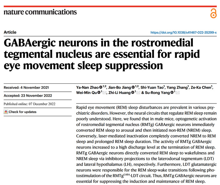 上海医学院黄志力研究团队杨素荣等发现睡眠时相转换的新核团和环...