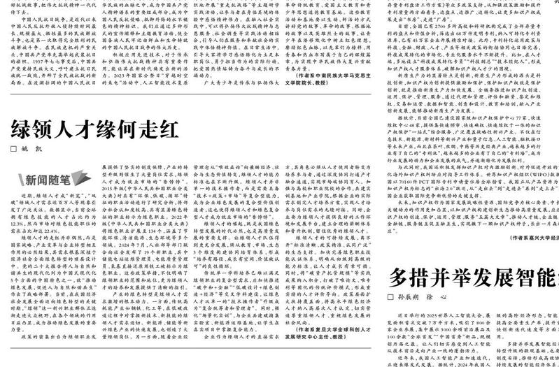 【新闻随笔】绿领人才缘何走红作者:姚凯《光明日报》( 2025年08月04日02版)【新闻随笔】 近期,绿领人...