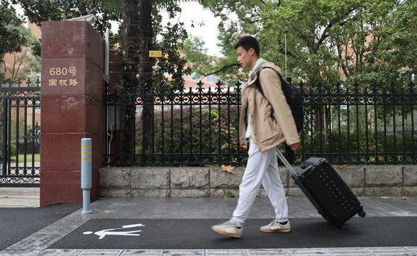 周末国权路上,时不时有师生拉着拉杆箱往返在学校与地铁10号线、18号线间。“拉杆箱道”、隐式井盖、减速标...