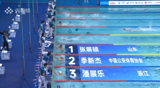 复旦学子张展硕在第十五届全国运动会男子200米自由泳决赛中夺金