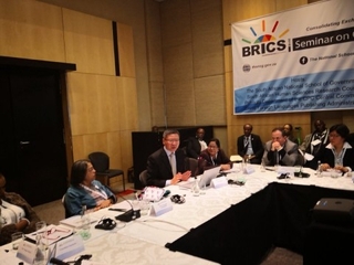 7月4日,2018金砖国家治国理政研讨会在南非约翰内斯堡桑顿国际会议中心举行,来自金砖国家的智库和学