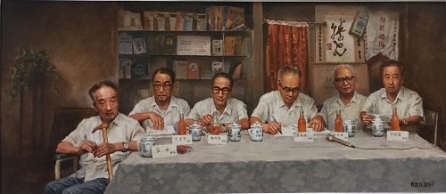 六位德高望重的老教授,一张1988 年拍摄的老照片,一幅2015 年再创作的油画,展示了一代宗师巨匠