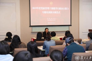 2019年11月29日下午,复旦大学2019年度党政管理干部提升行政办公能力专题培训班在光华楼东主楼101报告厅举...